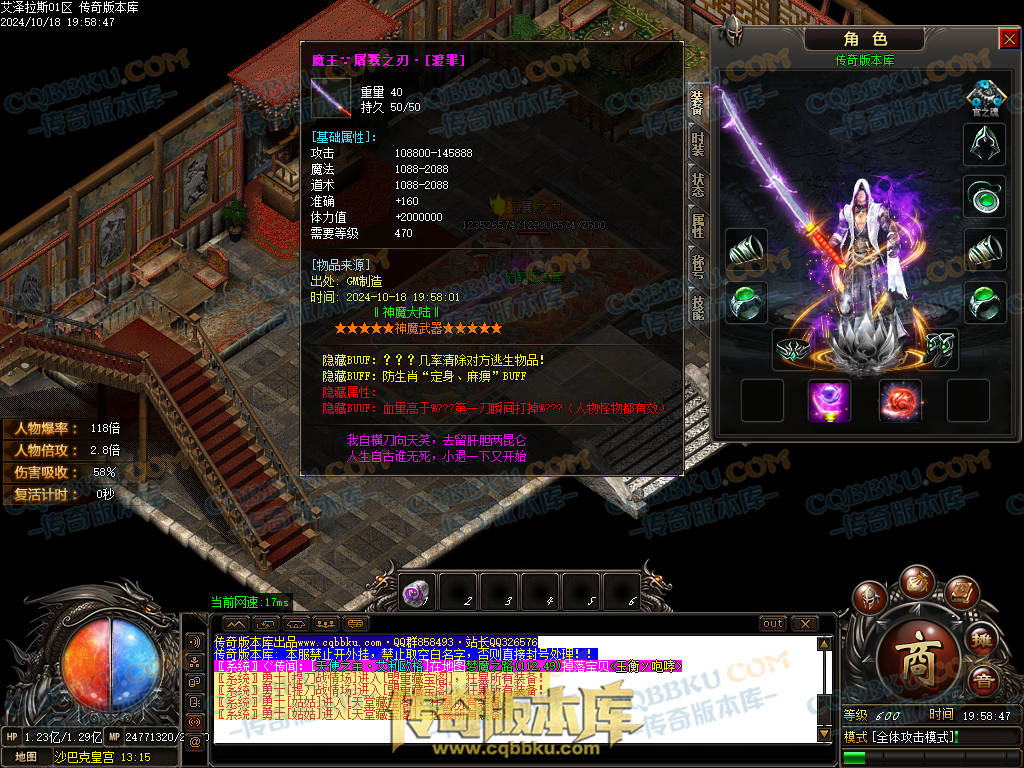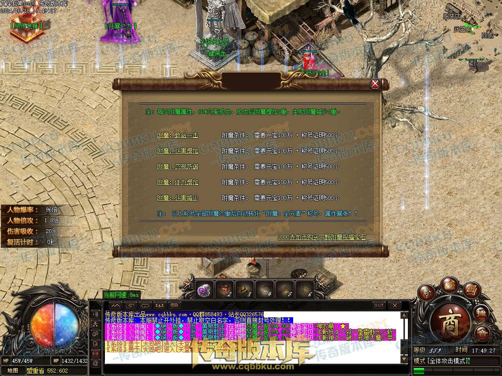 8.天书只有一本所有BOSS都爆。爆率增加0.5 倍攻增加0.1 切割300万 可以直飞天书地图.天书BOSS魂带无敌属性.谁有谁无敌(是怪就有几率掉落建议200-1000RMB出售)