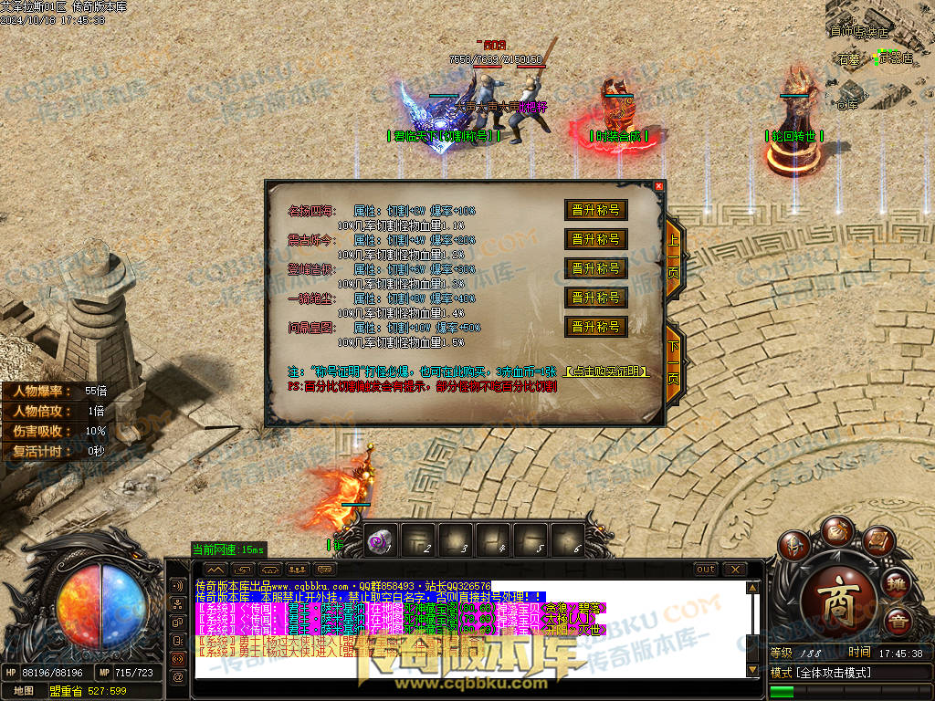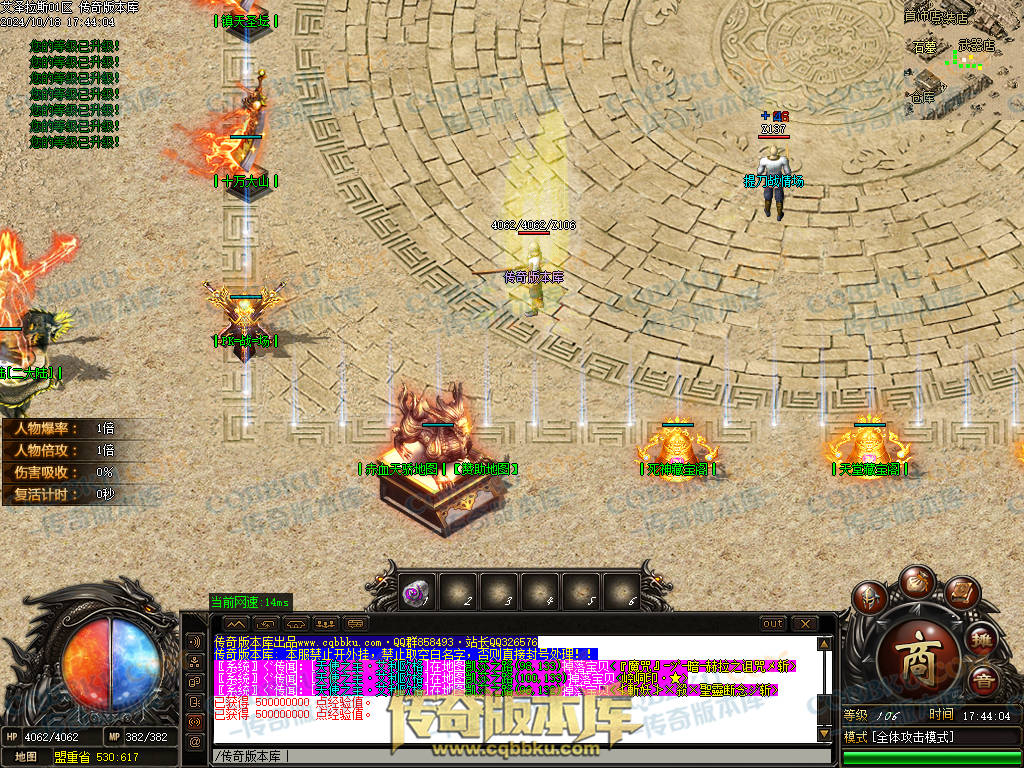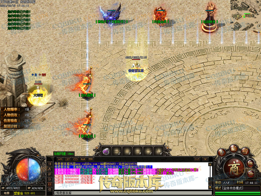 13.土豪上线就是无限收元宝升级轮回进地图打BOSS.高等级可以擒龙手麻痹低等级一秒.有出称号卷或者天书第一时间秒.快人一步