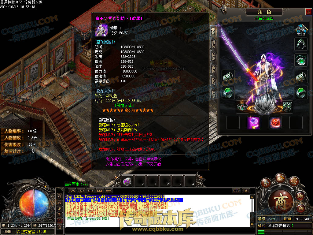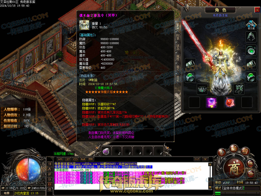 1.本服装备介绍.普通装备51套.转身装备17转终极.衣服武器14转终极.特殊首饰8套.