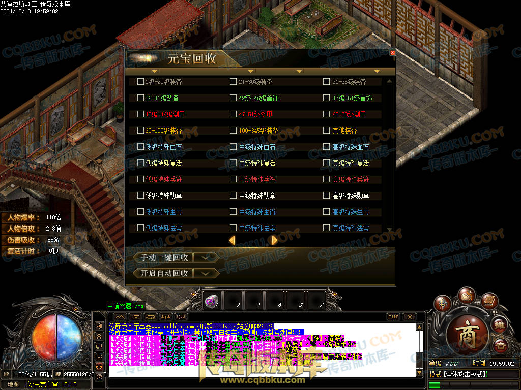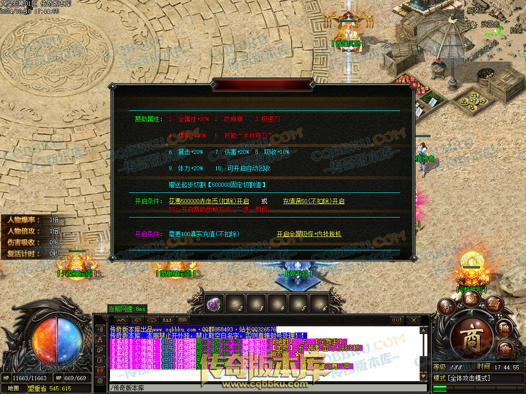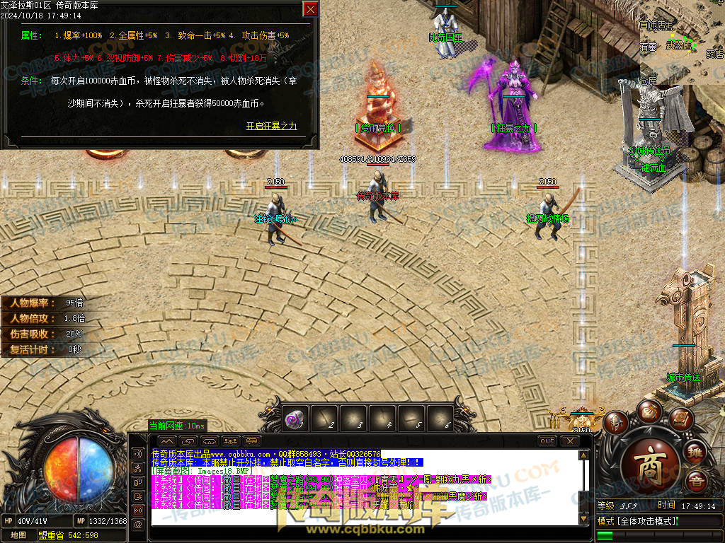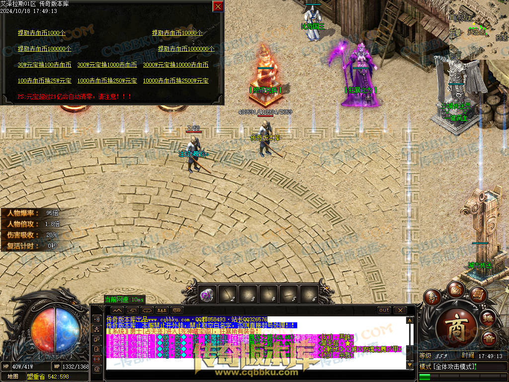 9.本服自动捡物需要花10RMB开启狂暴.被怪杀死小退大退不消失.拿沙期间不消失.