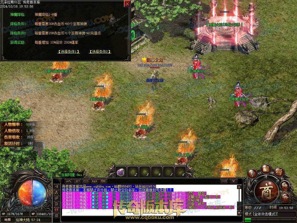 神魔2重.需要轮回达到10.也是只需要元宝和币.地图刷新所有BOSS.土豪起步关键.上线收元宝搞神魔一切交给脸.