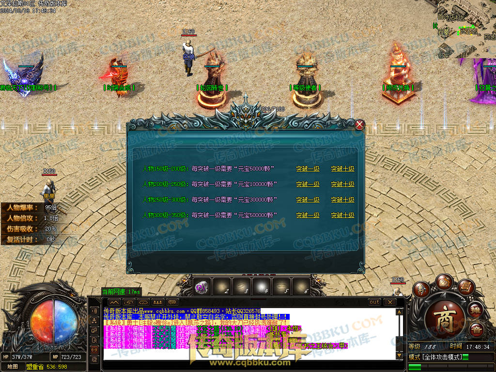6.等级350封顶(材料只需要元宝)305-350需要等级证明一个都是靠打怪获取.210开始每10级刷新BOSS.301-310每一级刷新BOSS.想合区牛逼等级提升卷必收物品之一