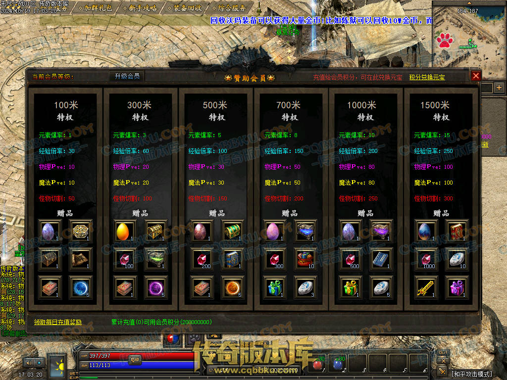 3.游戏内可掉落充值会员积分所有怪物均有几率!