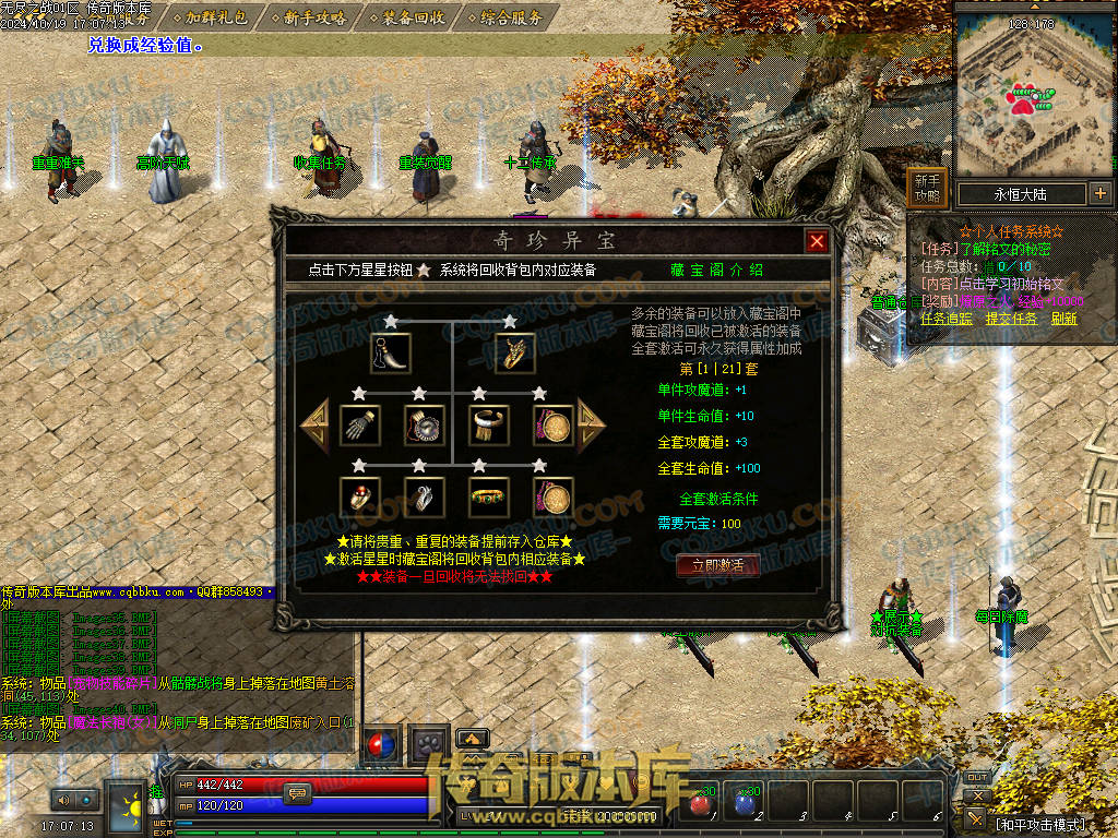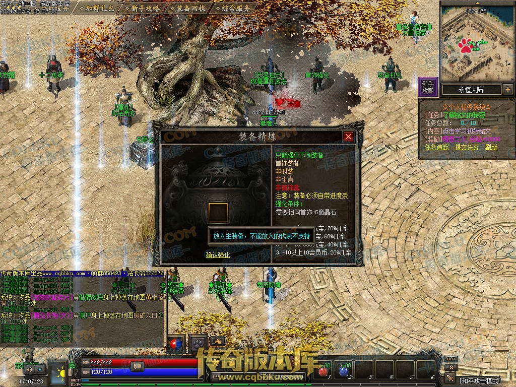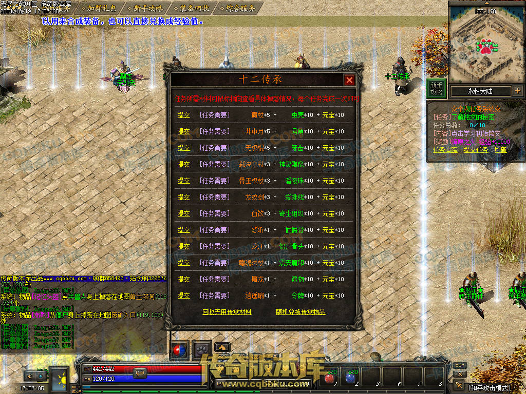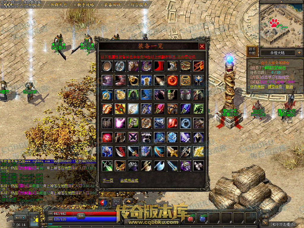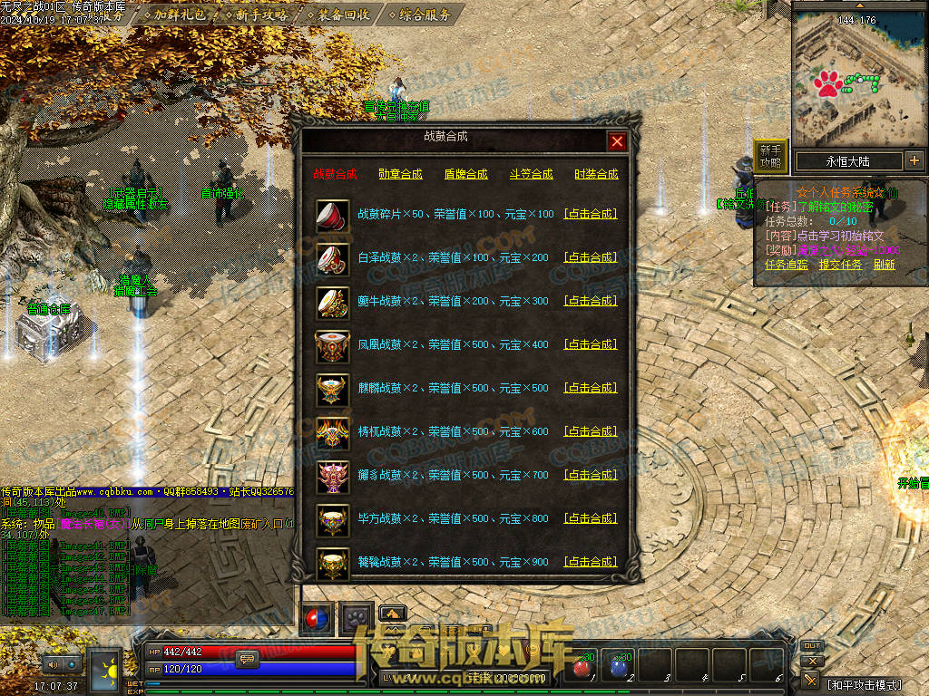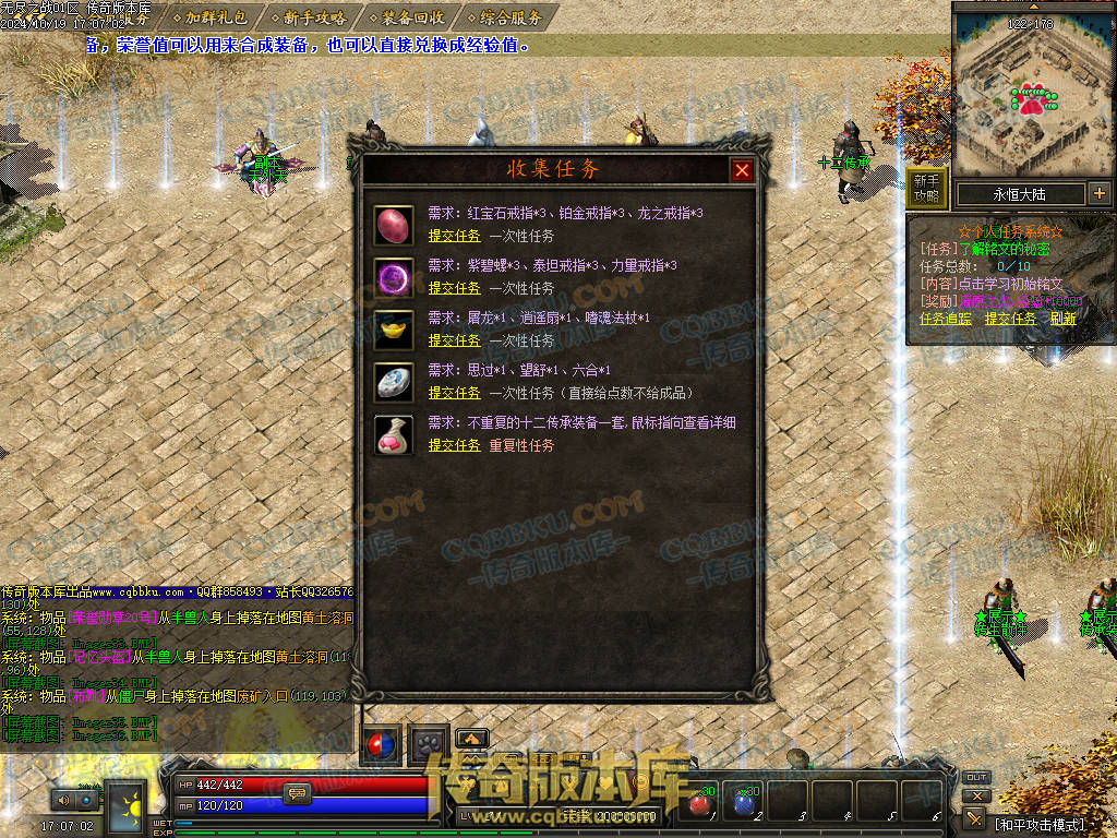 3.斗笠碎片任何地图怪物都爆在土城找斗笠合成使者。 (造化宝顶(终极)合成只有50%成功几率合成失败只扣元宝)