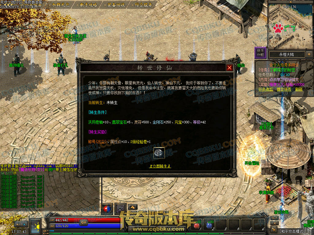 1.游戏暂不支持转职(有任务等附加永久固定属性转职会导致平衡类BUG)玩时请认真考虑职业(战士有攻速、道士BB能打BOSS、法师主群怪)。