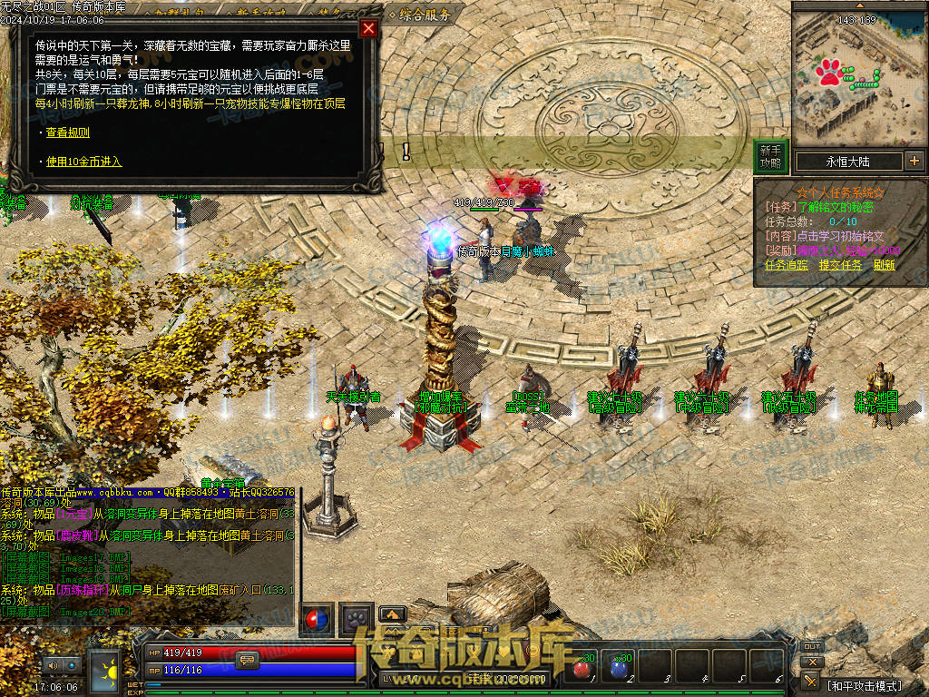 5.没钱进地图或者买药的玩家可以去比奇矿区挖狗头金1个狗头金可兑换5W金币更能挖出经验倍卷和刻印石。