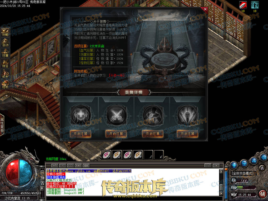 2.狂暴: 8米可开启四个送十步一杀)PK比较爽。爆率和切割很明显,建议散人玩家也开启